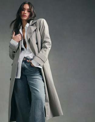 ASOS DESIGN – Brungrå trenchcoat med stora axlar