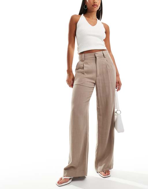 ASOS DESIGN – Brungrå, vida byxor i linnemix och dad-modell