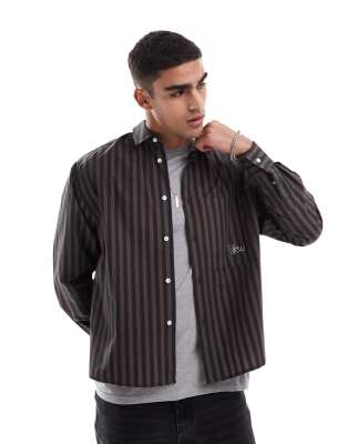 ASOS DESIGN – Brunrandig, boxig skjorta i oversize