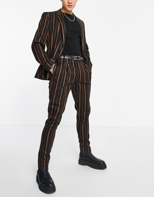 ASOS DESIGN – Brunrandig kostym med extra smal passform