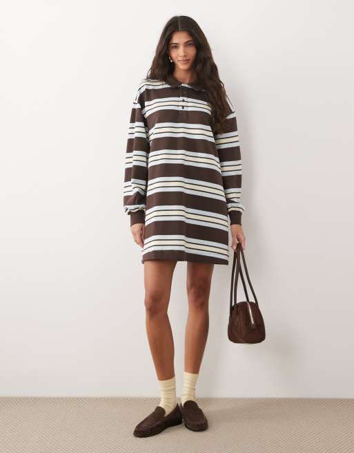 ASOS DESIGN – Brunrandig, minilång rugbyklänning med pikékrage