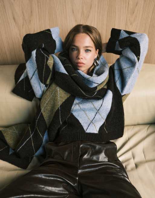 ASOS DESIGN – Brunrutig, argylemönstrad och stickad halsduk i oversize fit
