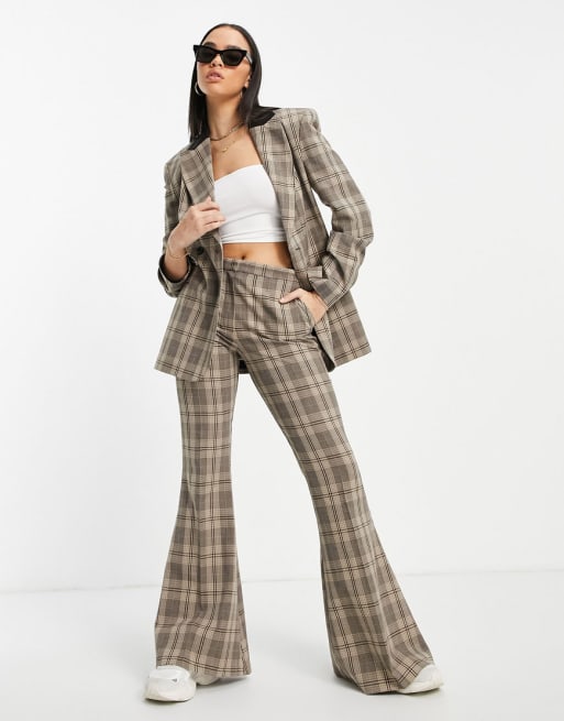 ASOS DESIGN – Brunrutig, dubbelknäppt kostym