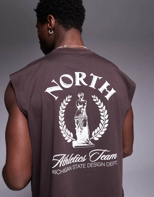 ASOS DESIGN – Brunt, boxigt linne i oversize med tryck fram- och baktill