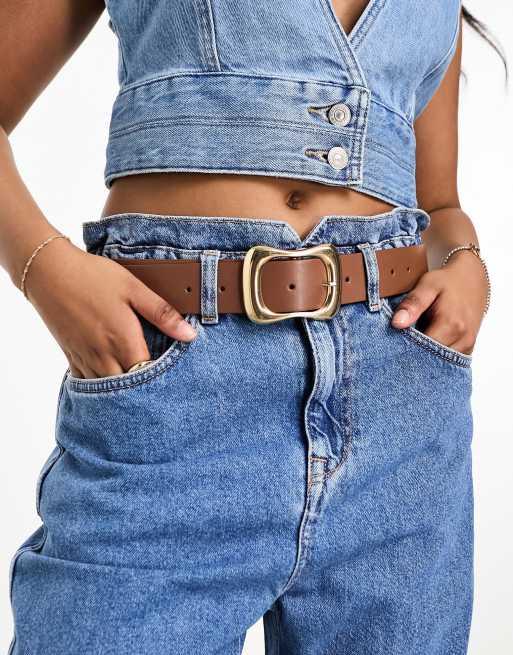ASOS DESIGN – Brunt höft- och midjeskärp med vågformat spänne