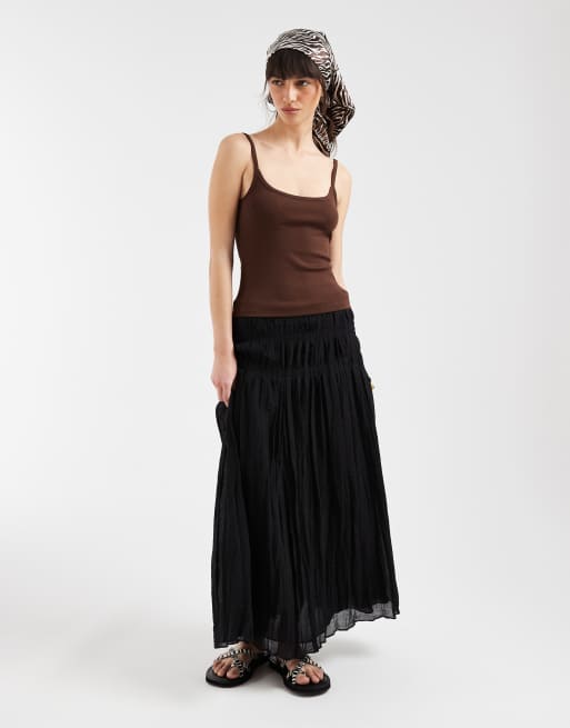 ASOS DESIGN – Brunt linne med djup halsringning och elastiska band