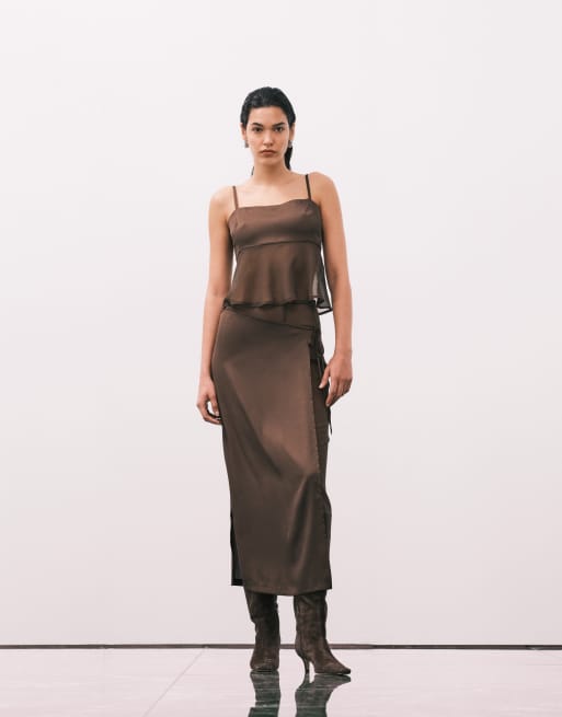 ASOS DESIGN – Brunt set med linne i satin
