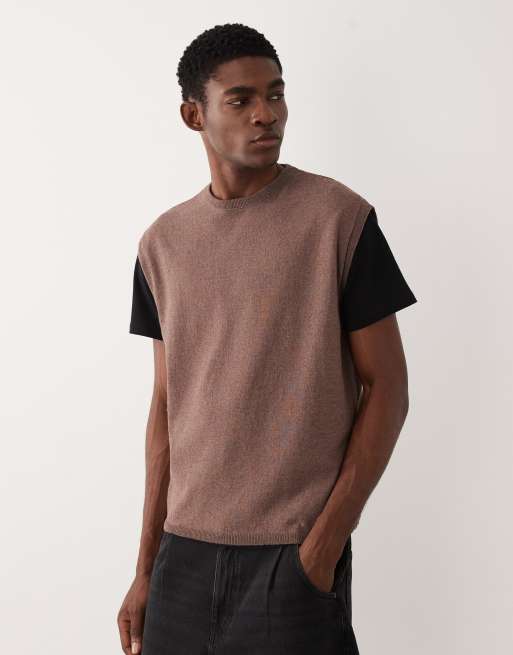 ASOS DESIGN – Brunt, stickat linne i oversize med rund halsringning