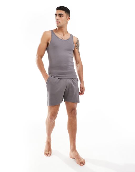 ASOS DESIGN – Capsule Collection – Mörkgrå, ribbade shorts