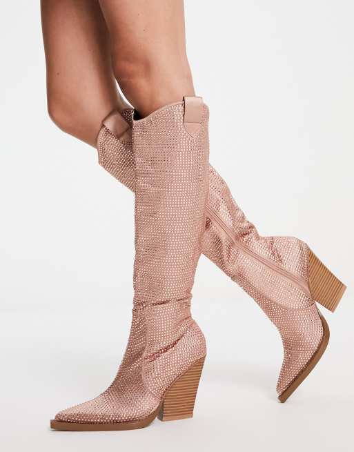 ASOS DESIGN – Catapult – Cowboyboots med klack och rosé-guldfärgade strasstenar