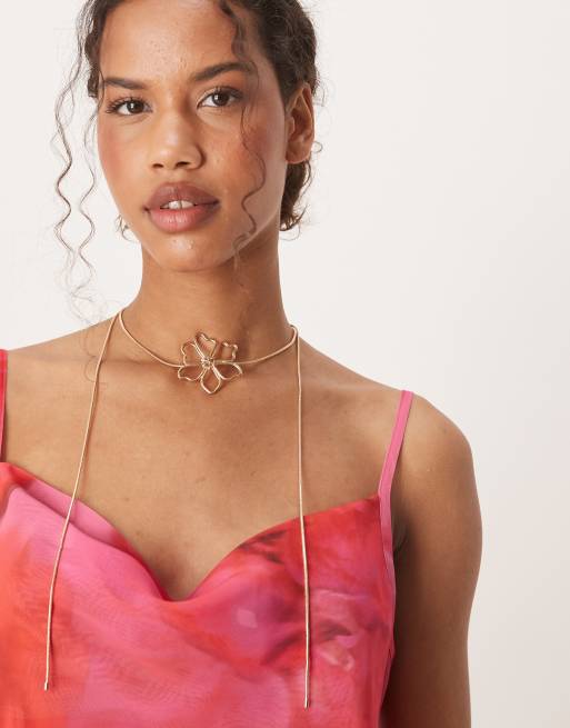 ASOS DESIGN – Choker-halsband med guldfärgad blomma