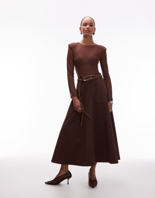ASOS DESIGN – Chokladbrun, figursydd maxikjol i rundskuren design