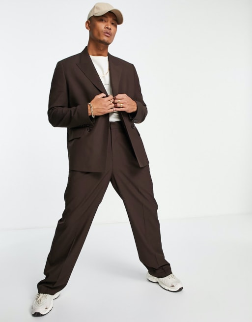 ASOS DESIGN – Chokladbrun kostym med boxig passform