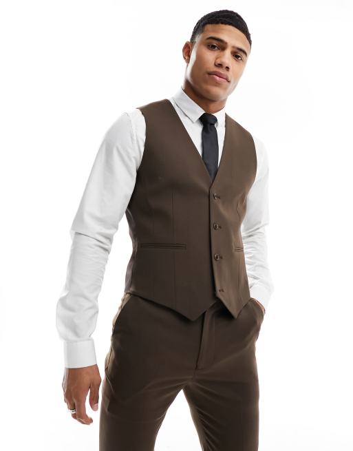 ASOS DESIGN – Chokladbrun kostymväst med extra smal passform
