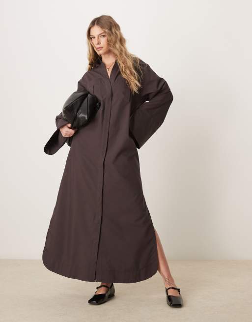 ASOS DESIGN – Chokladbrun maxi-skjortklänning i trapetsstil med breda ärmslut och stora fickor