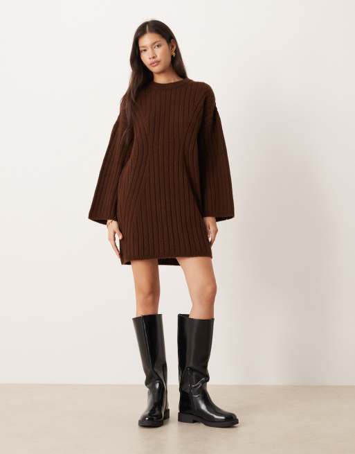 ASOS DESIGN – Chokladbrun, ribbstickad tröjklänning med rund halsringning