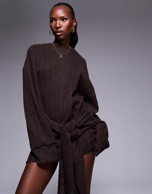 ASOS DESIGN – Chokladbrun, supermjuk, grov miniklänning med knytning i midjan