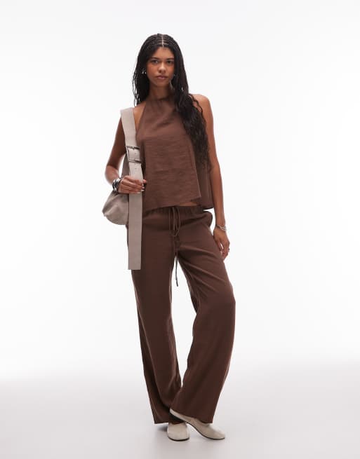 ASOS DESIGN – Chokladbruna, avslappnade byxor i dra på-modell av modal