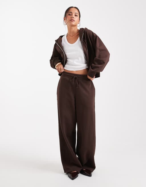 ASOS DESIGN – Chokladbruna mjukisbyxor i oversize med barrelben, dekorativ söm och borstad insida