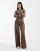 ASOS DESIGN – Chokladbrunt set med långa ärmar och vida ben