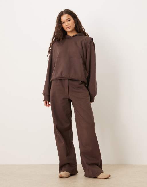 ASOS DESIGN – Circular Design Collection – Bruna mjukisbyxor med vida ben och dekorativ söm