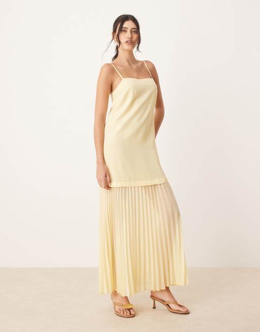 ASOS DESIGN – Citrongul midiklänning med plisserad kjol, låg midja och axelband