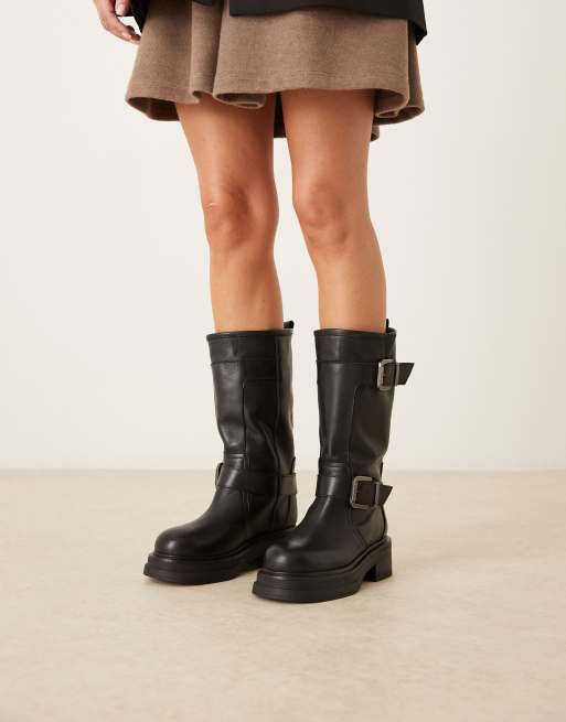 ASOS DESIGN – Cohen – Svarta, knähöga boots i läder med flera spännen