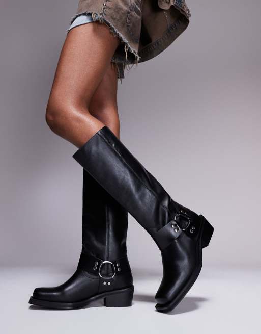 ASOS DESIGN – Colorado – Premium – Svarta knähöga bikerboots i läder