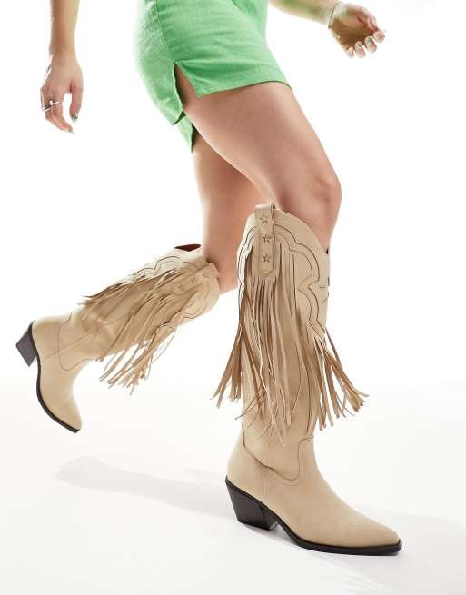 ASOS DESIGN – Comet – Beige, knähöga cowboyboots med fransar
