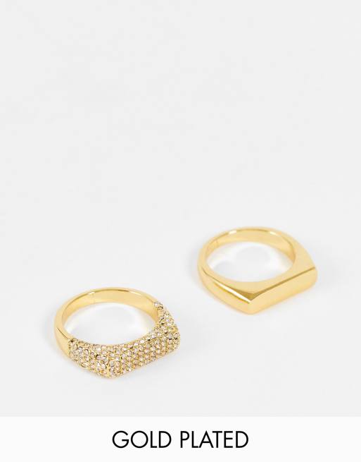 ASOS DESIGN Curve – 2 ringar med 14k guldplätering och slät och kristallprydd design
