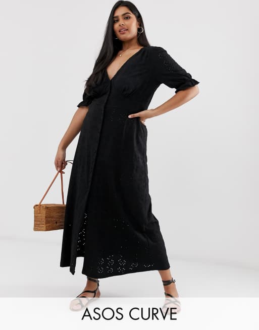 ASOS DESIGN Curve – Broderad tea-klänning i maxilängd