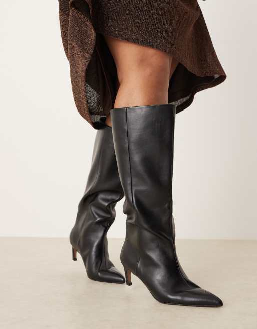 ASOS DESIGN Curve – Carmel – Svarta, knähöga stövlar med taxklackar i dra på-modell