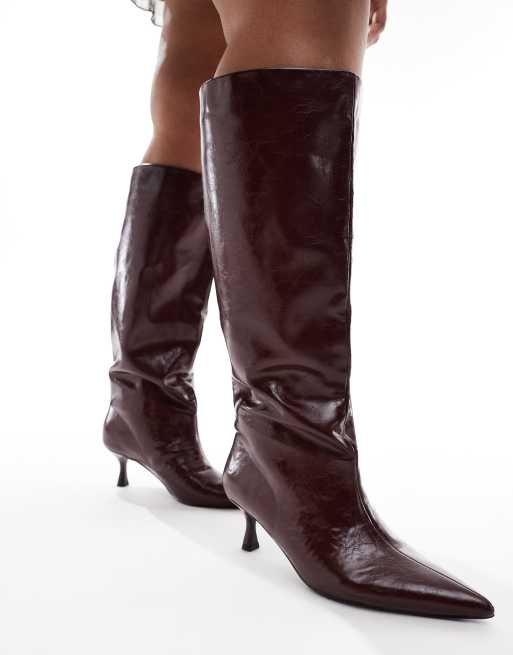 ASOS DESIGN Curve – Crimson – Vinröda, knähöga boots i dra på-stil med taxklack