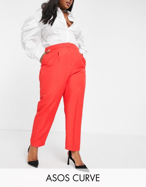 ASOS DESIGN Curve – Röda kostymbyxor i dad-modell med krympt passform