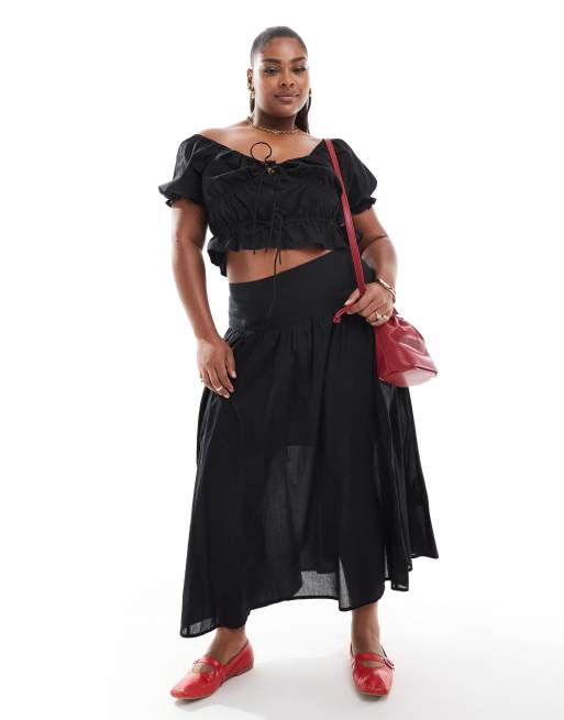ASOS DESIGN Curve – Svart midikjol med foder och sänkt midja