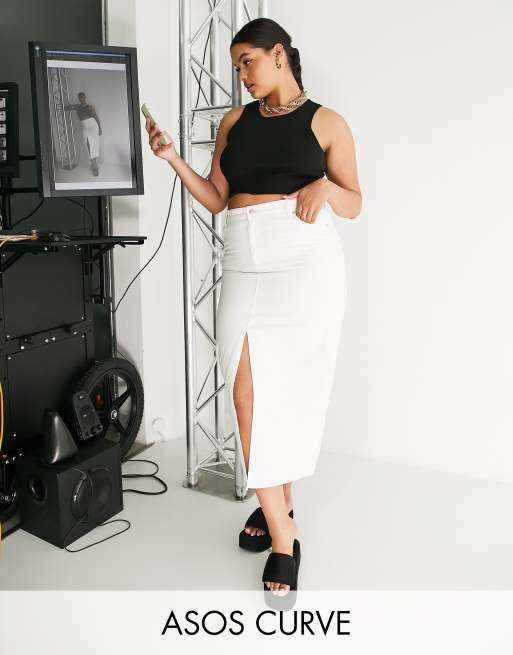ASOS DESIGN Curve – Vit jeanskjol av denim i 90-talsstil