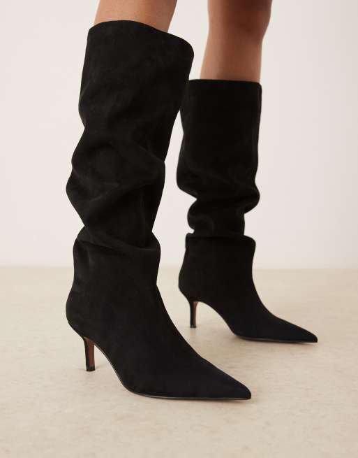 ASOS DESIGN – Cydney – Svarta, slouchy, knähöga stövlar i dra på-stil av mockaimitation