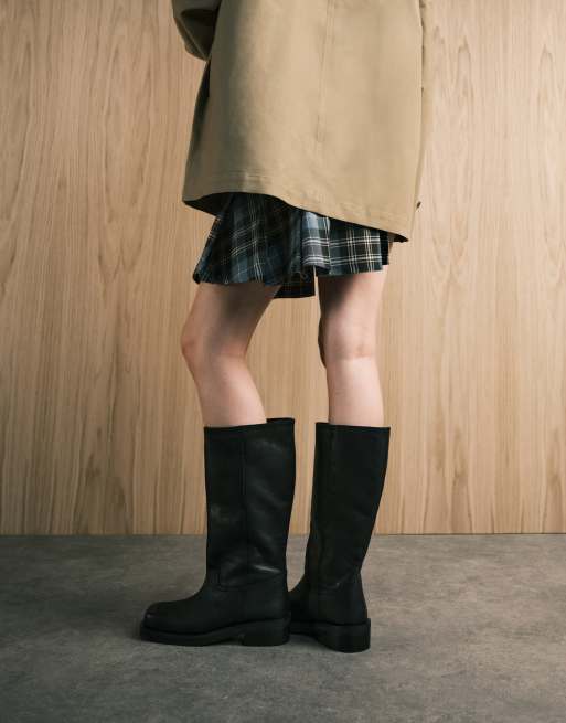ASOS DESIGN – Cynthia – Svarta truckerboots i läder