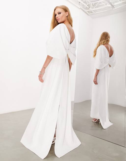 ASOS DESIGN – Dahlia – Bröllopsklänning i maxilängd av crêpe med rosett baktill
