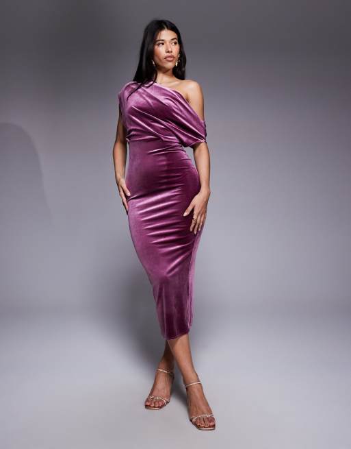 ASOS DESIGN – Dimrosa midiklänning med dramatisk ringning i sammet