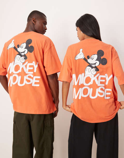 ASOS DESIGN – Disney – Blekorange t-shirt i oversize och unisex-modell med Musse Pigg-tryck