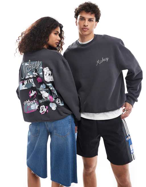 ASOS DESIGN – Disney – Bleksvart sweatshirt i unisex-modell med boxig oversize passform och Musse Pigg-tryck