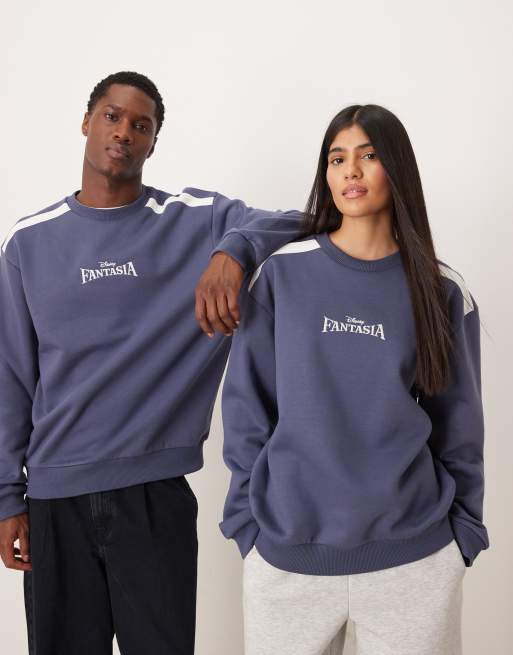 ASOS DESIGN – Disney – Fantasia – Blå, avslappnad tröja med rund halsringning och Musse Pigg-tryck