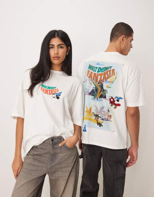 ASOS DESIGN – Disney – Fantasia – Vit t-shirt i oversize och unisex-modell med Musse Pigg-tryck