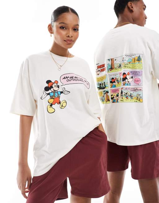 ASOS DESIGN – Disney – Gräddvit pyjamas med Musse Piggs camping-tryck