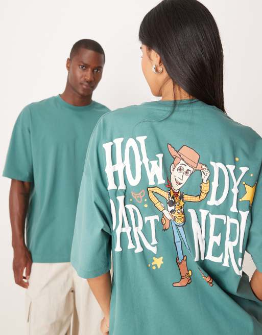 ASOS DESIGN – Disney Pixar – Grön t-shirt i oversize och unisex-modell med Woody Toy Story-tryck