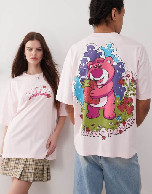 ASOS DESIGN – Disney Pixar – Unisex – Ljusrosa t-shirt i oversize med Toy Story Lotso-tryck