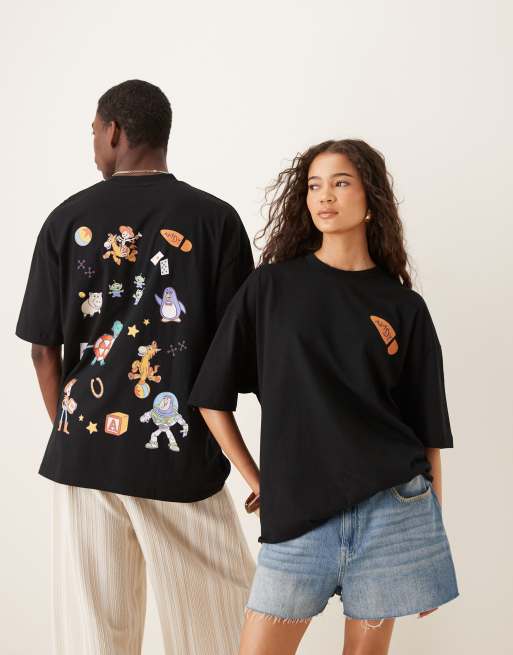 ASOS DESIGN – Disney Pixar – Unisex – Svart t-shirt i oversize med flera Toy Story-tryck
