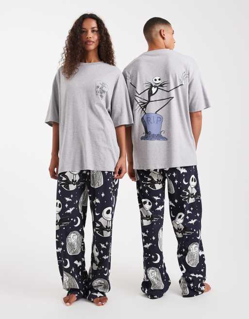 ASOS DESIGN – Disney – Svart julpyjamas med The Nightmare Before Christmas-tryck