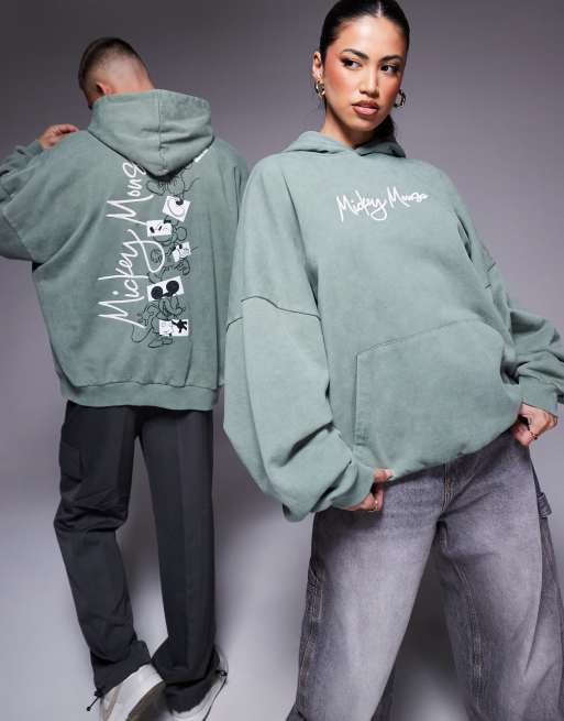 ASOS DESIGN – Disney – Unisex – Salviagrön huvtröja i extra oversize med Musse Pigg-tryck